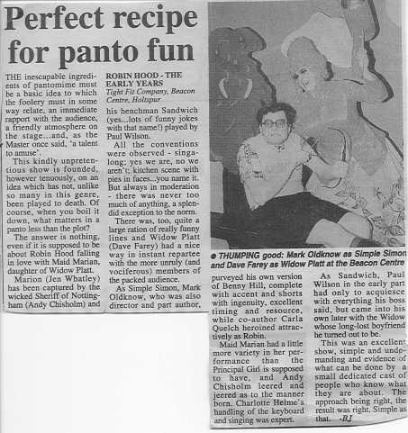 This pantomime, for children aged between 3 and 103, was written by Mark Oldknow and Carla Quelch and was originally performed as part of the South Bucks District Council "Plays Away" season.